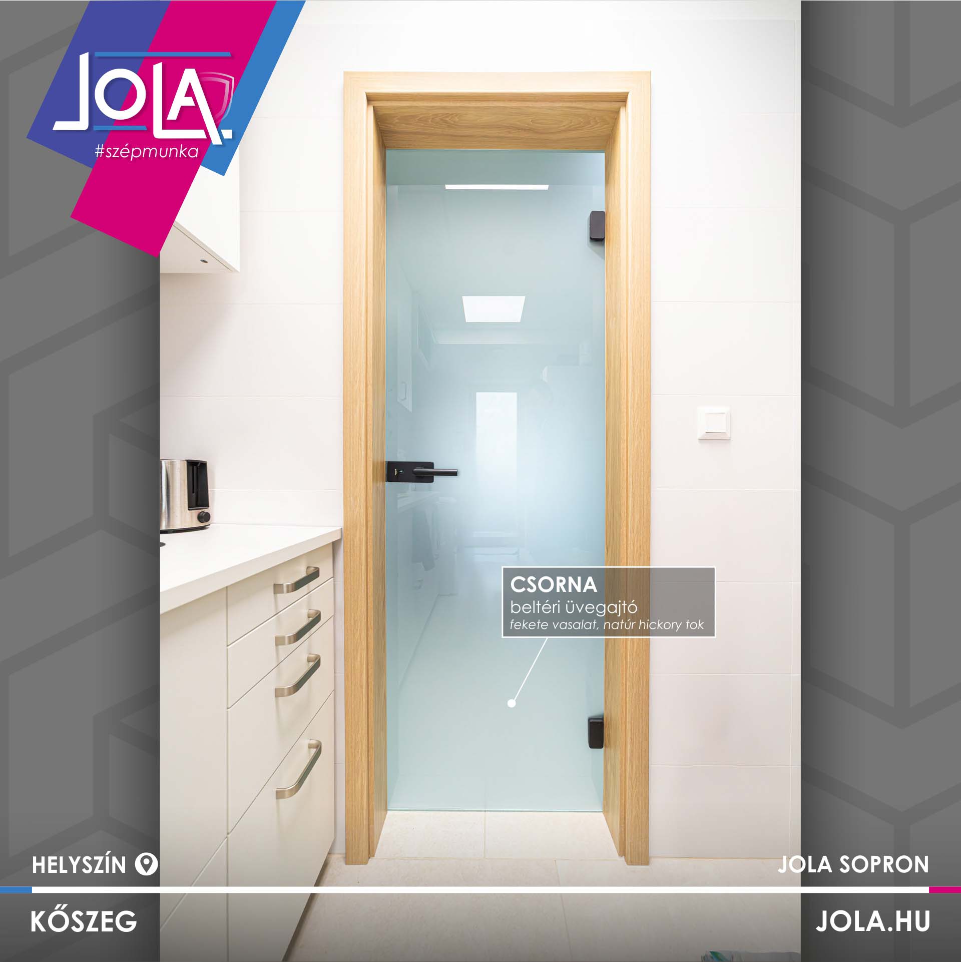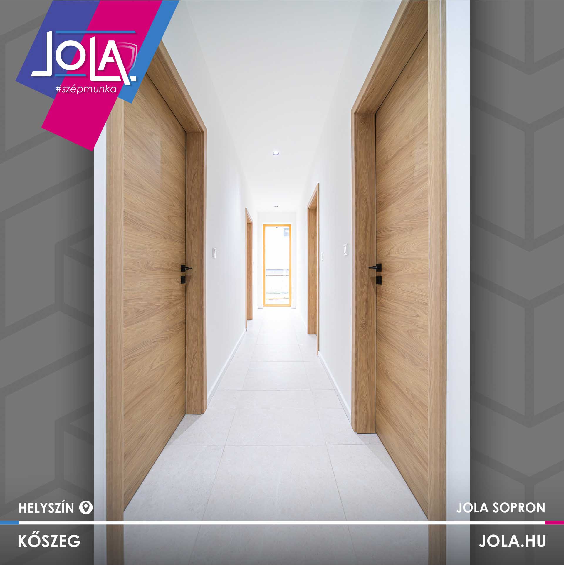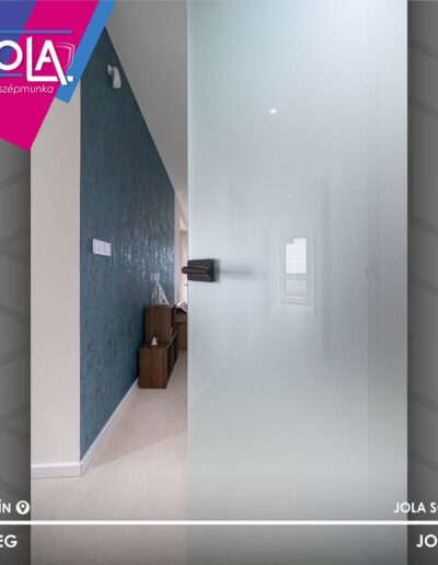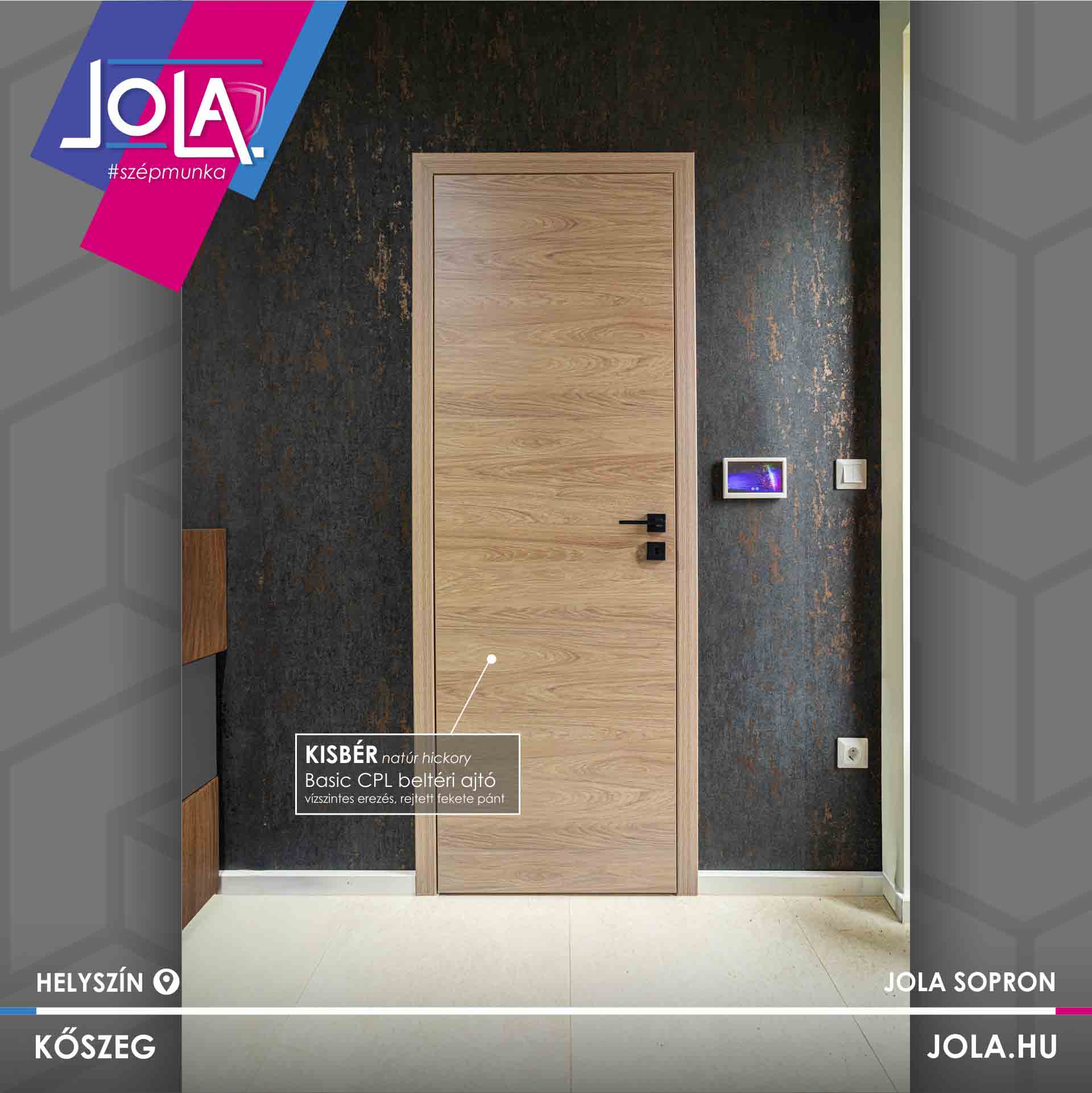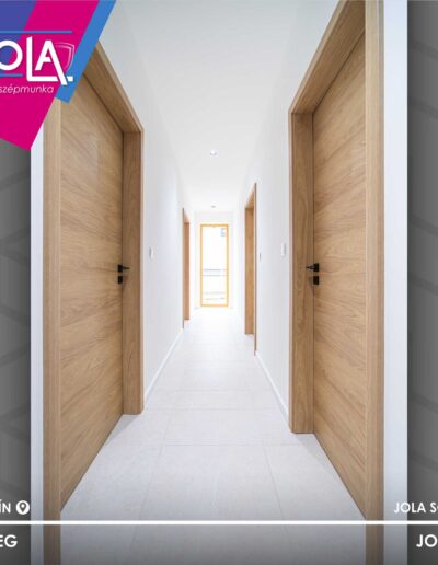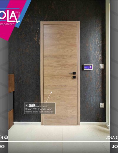 Csabáéknál Basic CPL ajtókat építettek, ennek a termékcsoportnak a „Csorna” üvegajtó típusát, valamint a „Kisbér” vízszintes erezetű formáját (natur hickory szín), abból is a ritkább, rejtett pántos változatot.