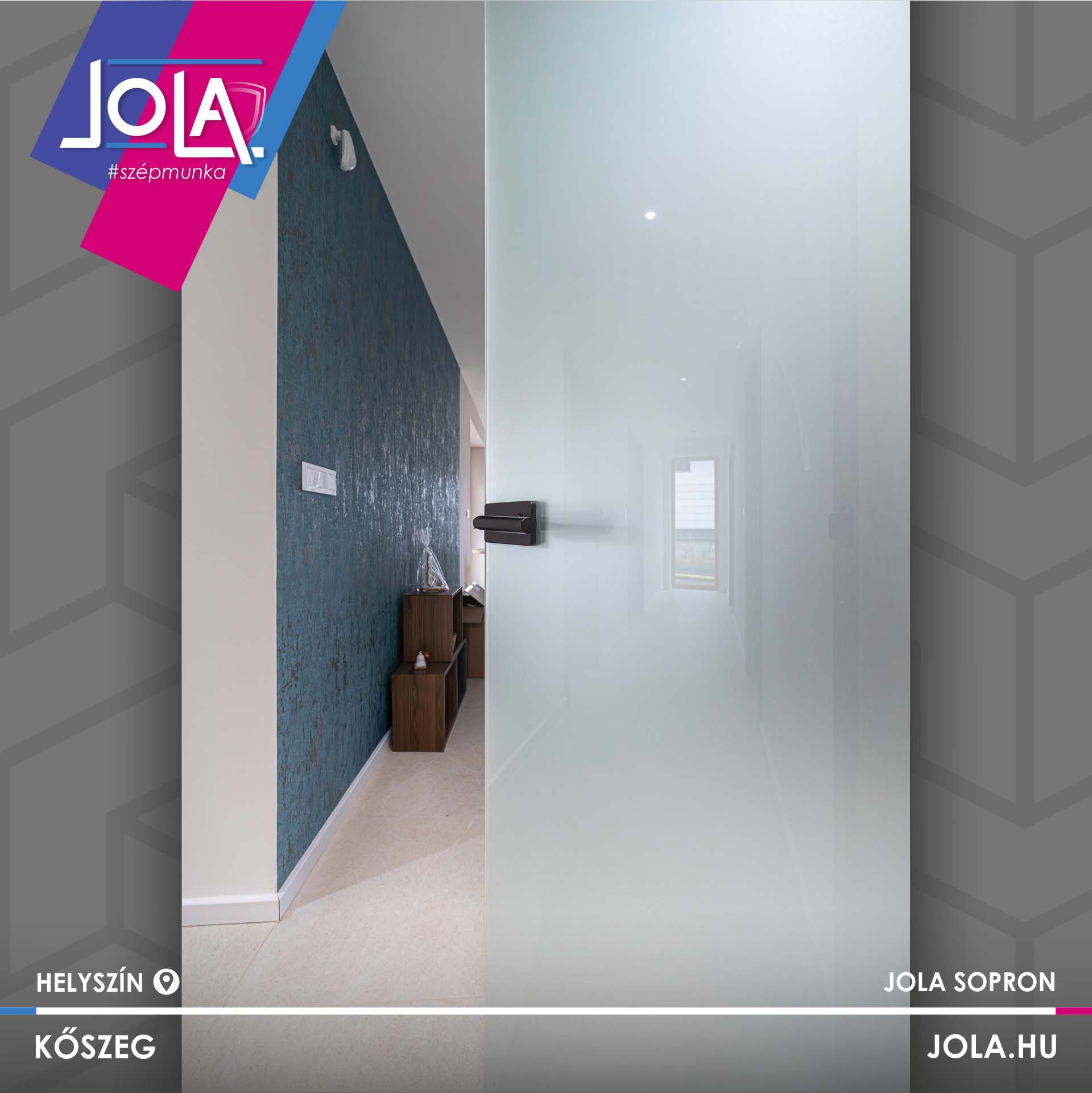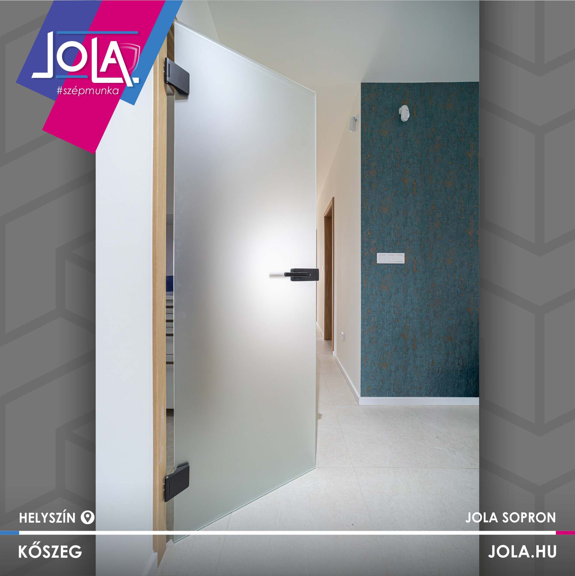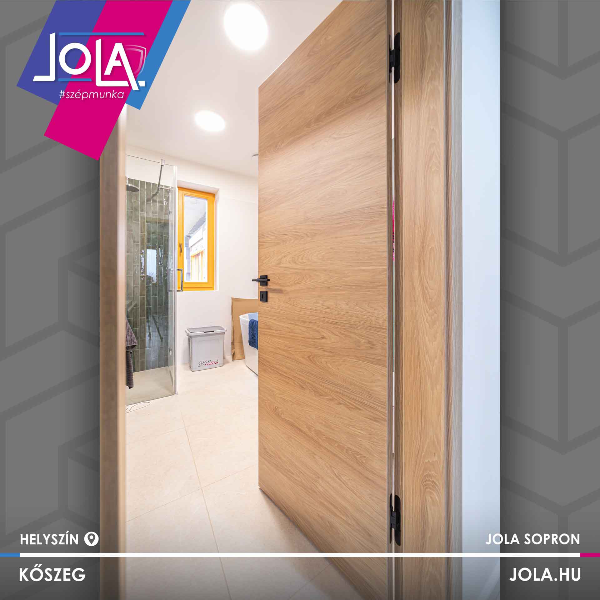 Csabáéknál Basic CPL ajtókat építettek, ennek a termékcsoportnak a „Csorna” üvegajtó típusát, valamint a „Kisbér” vízszintes erezetű formáját (natur hickory szín), abból is a ritkább, rejtett pántos változatot.
