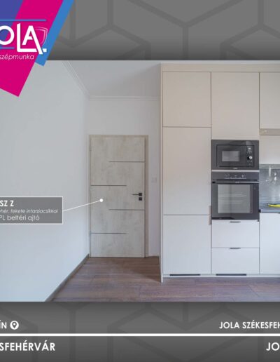Megbízónk beltéri ajtó választása a Basic CPL termékcsalád Lindosz Z típusára és a chromix fehér színre esett – fekete intarzia csíkkal. (Hab a tortán a Bussare Fresco fekete kilincse, ami nagyon ideillik!)