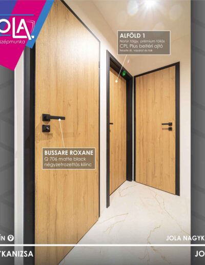A bejárati ajtó a „Bocskai”, a beltéri ajtó az „Alföld” típus.