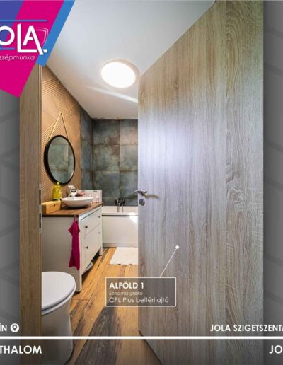 A kiválasztott ajtó a CPL Plus termékcsalád Alföld 1-e volt, sonoma greko fóliával, hozzá pedig a Maestro Arco kilincse.