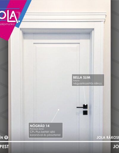 Ügyfelünk és rákospalotai kollégánk a tokot koronával és pilaszterrel egészítette ki, így növelve az ajtó belsőépítészeti hatását is.