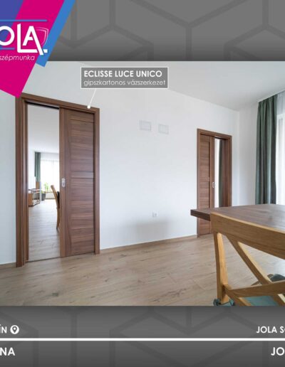 klasszikus forma, klasszikus szín, ahol fényre van szükség, ott üveges kivitelben, ahol a helytakarékosság a szempont, ott pedig a toló kivitelt kérték (falban futtatva, Eclisse rendszerrel).